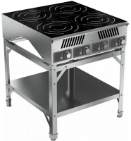4 конфорки; индукционная и стеклокерамика конфорка; 380 В