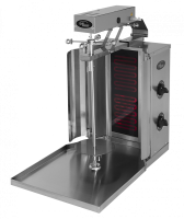 Аппарат оснащен вертикальным шампуром, на котором размещается мясная начинка. Комплектуется разными нагревательными элементами, такими как ТЭНы или газовые горелки, в зависимости от предпочтений и требований пользователя (соответственно, электрические или газовые модели гриля). Поддон из нержавеющей стали нужен для сбора вытекающего жира и удобства работы повара.
